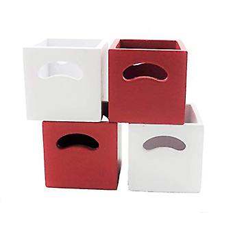 دمى البيت 4 الأحمر الحديث & مربعات تخزين مكعب أبيض مصغرة 1:12