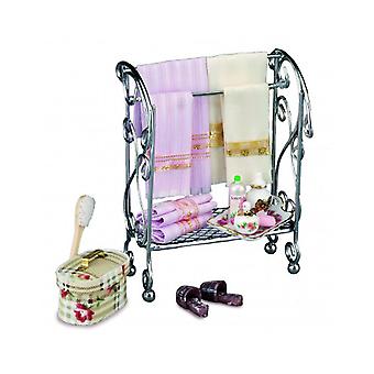 دمى منزل منشفة موقف مع الملحقات مصغرة Reutter أثاث الحمام