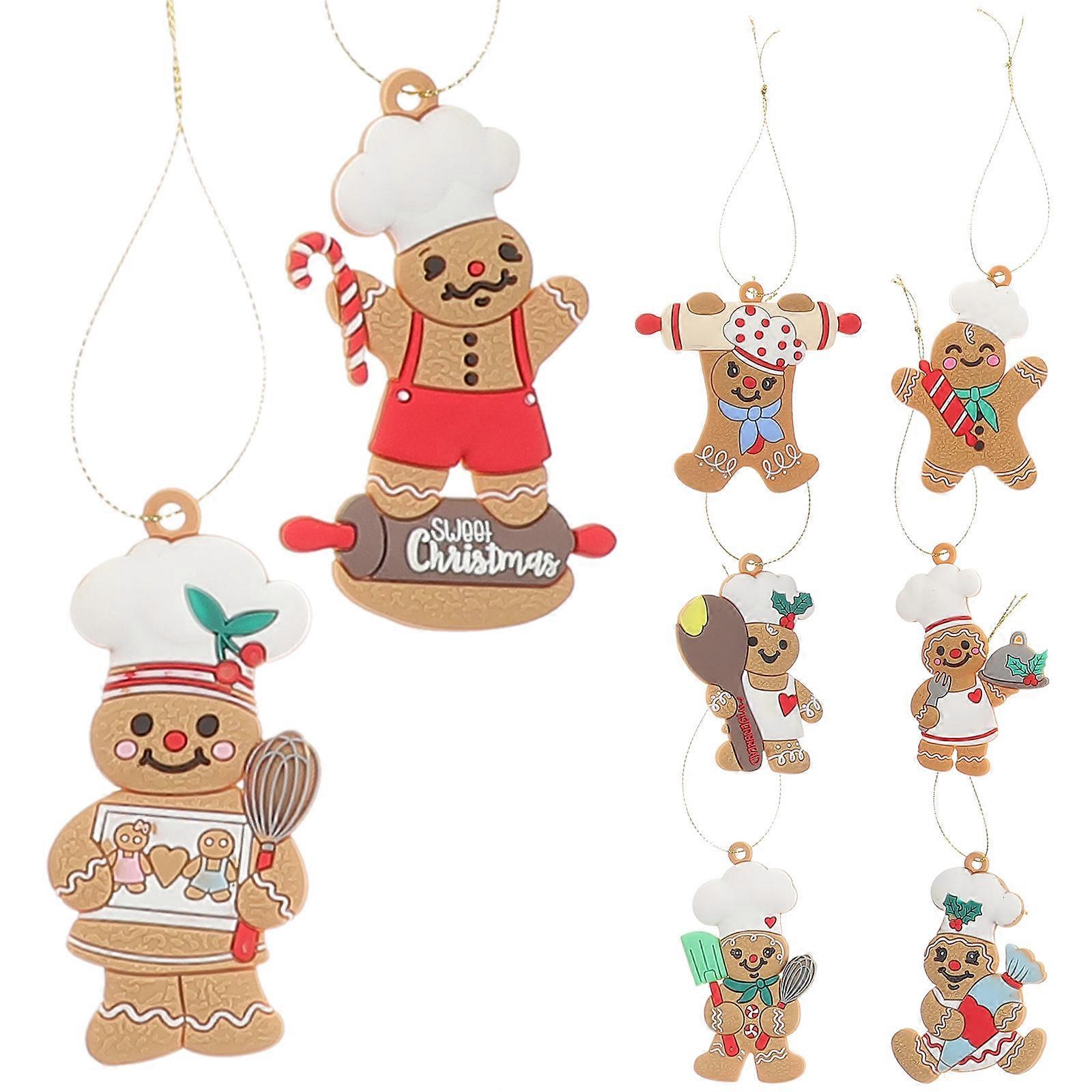 Home Decor Ornaments Gingerbread Man Pendants Christmas Multi 7.5x7x0.4cm Party Scene Layout 8Pcs