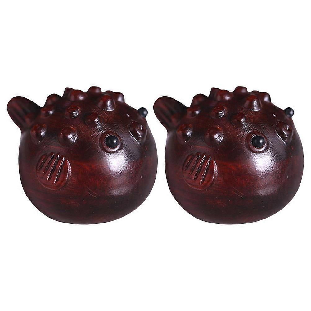 Home Decor Fish Sandalwood Globefish Decor Ornaments For Desk Table Bookcase Shelf 2Pcs