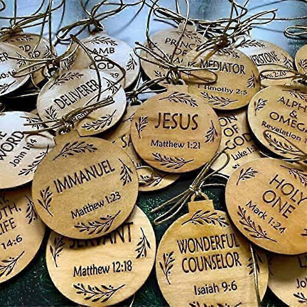 Home Decor 12/25PCS Names of Jesus Ornaments Wooden Christmas Tree Hanging Pendant