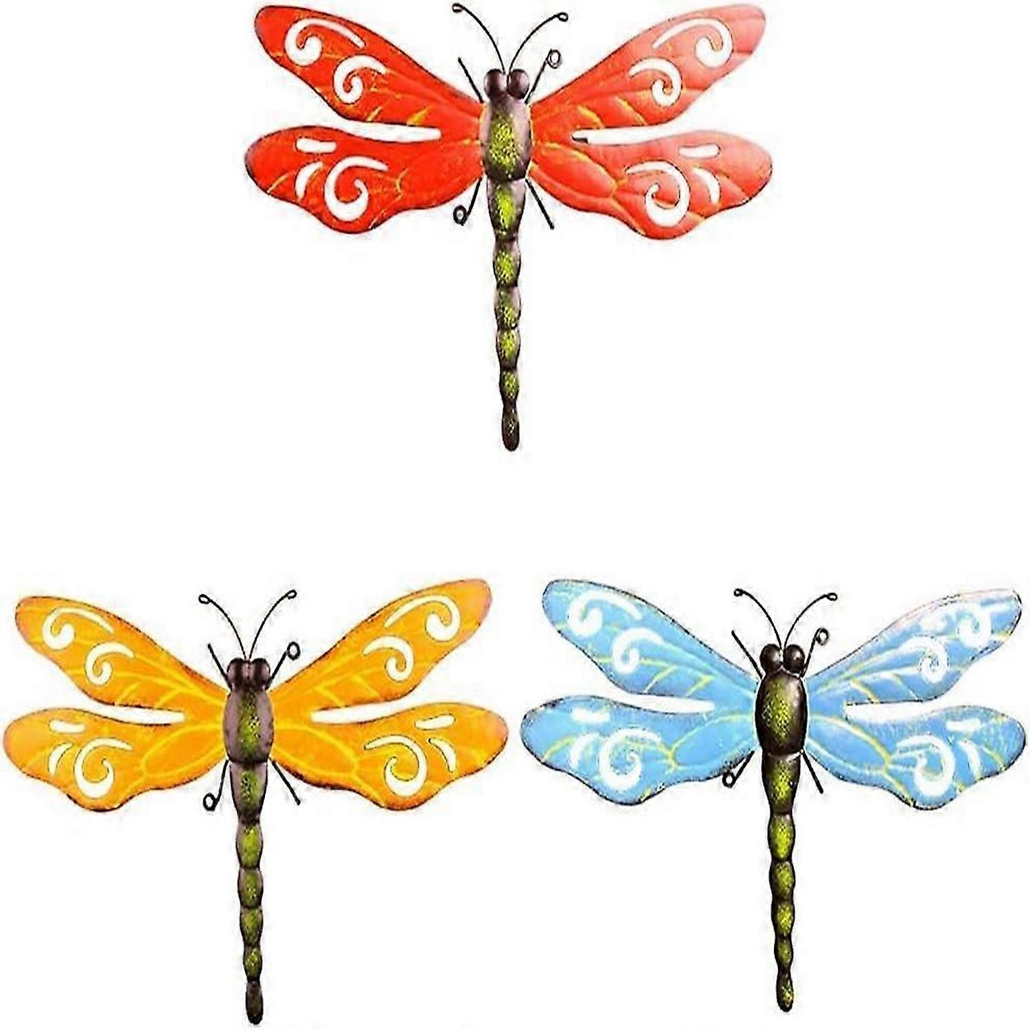 Metal Dragonfly Wall Decor Outdoor Garden Fence Art,hanging Decorations,3d Dragonfly Set With Vibrant Painting, 3 Pack