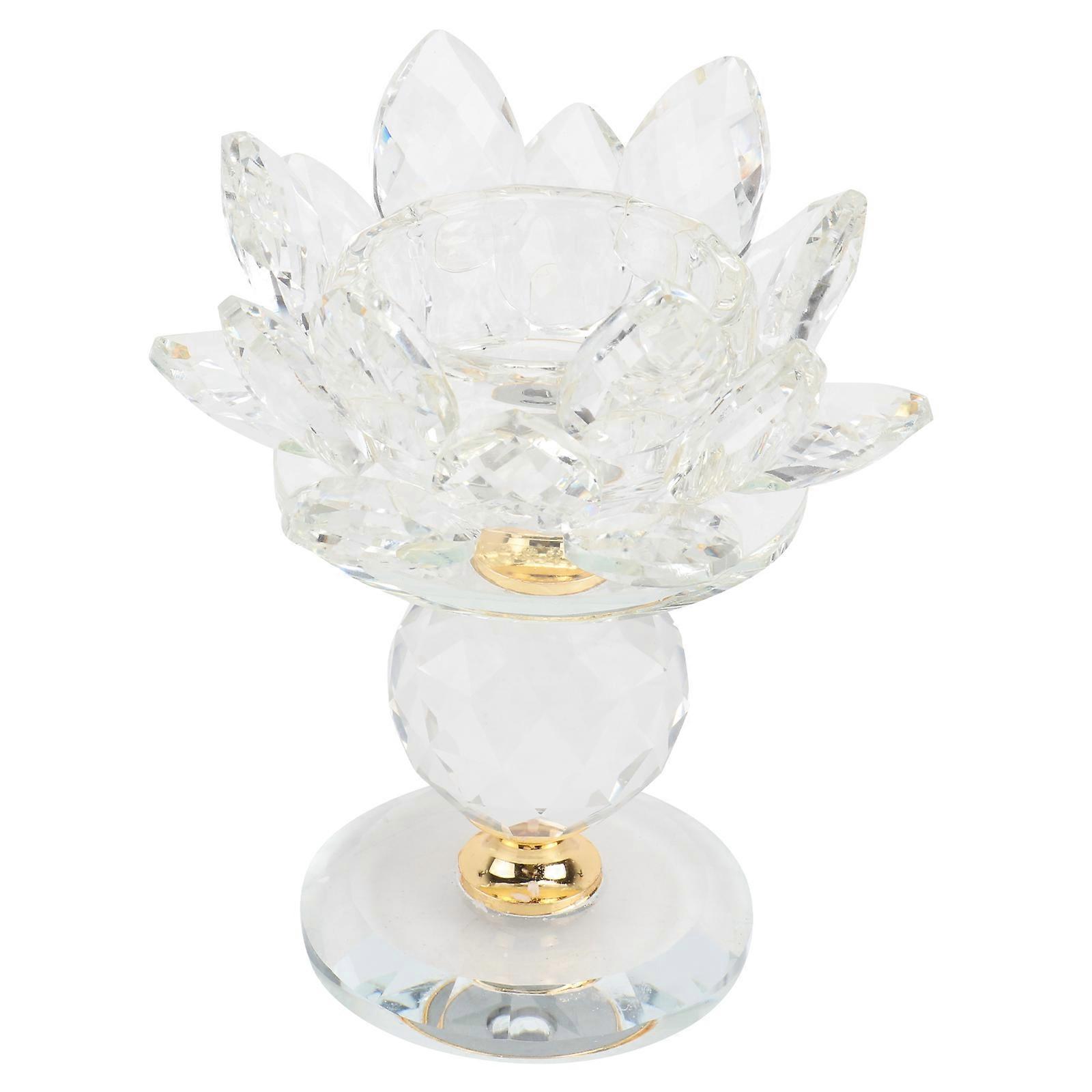 Desktop Candlestick Decor Delicate Crystal Lotus Candleholder Home Office Hotel Temple 16x11.5cm Metal 1Pcs