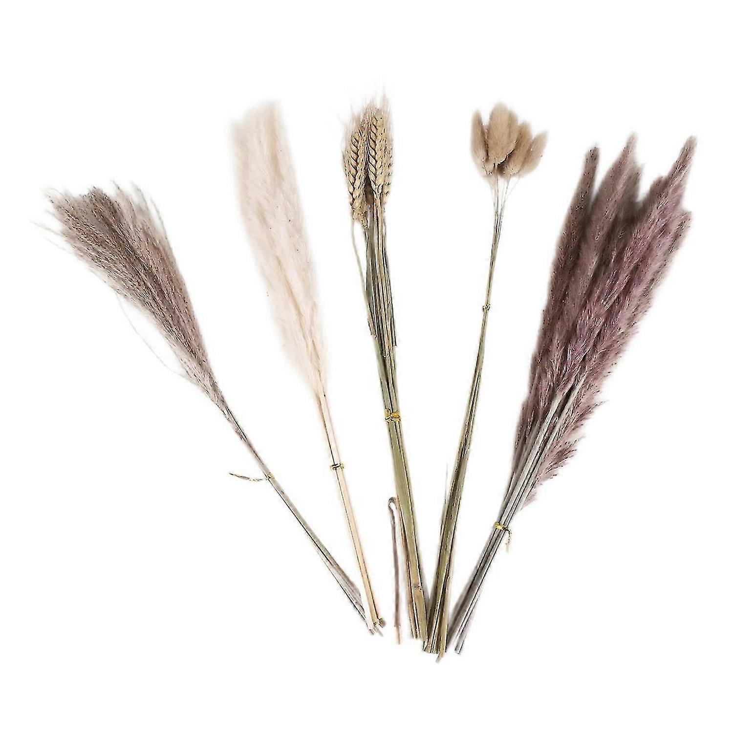 1. Display Of Nature: Our multicolored natural pampas grass blends easily into the environment and gives your home a natural and puffy look all year round. Your Pampas Grass set includes five different stalks that add class to your place. 2. Wrapped With Care: On buying our premium natural grass pampas, you'll observe that every stalk is carefully wrapped and tied with a string. 3. The Right Pick To Color Your Life: You desire, we deliver! Pampas Grass has an average length 44-45cm carefully bundled together in pristine condition. With a display of warm hue. Enjoy the natural relaxing ambiance at its finest! 4. Occasions Made Special!:You can make someone's day with this beautiful pampas' grass Decor gift, perfect for all occasions, including a housewarming party, valentine's day, Mother's Day, anniversary, or any other special event. 5. Simple Set-up:Setting up your Pampas grass has never been this easy! Once removed from the package, put the pampas grass under the sun for few hours or blow dry for a couple of minutes on gentle settings to restore its fluffiness. It's natural for pampas grass to shed initially, but once placed, it'll have minimum shedding; you can also hairspray each plume to avoid future shedding.<br><br>colour: as shown Material: hay<br><br>Package Contents: 5 x white Pampas grass reeds 10 x Natural Pampas reeds. 10 x Natural bunny tail reeds 10 x wheat pampas reeds 5 x dust pampas reeds<br><br>Only the above package content, other products are not included. Note: Light shooting and different displays may cause the color of the item in the picture a little different from the real thing. The measurement allowed error is +/- 1-3cm.