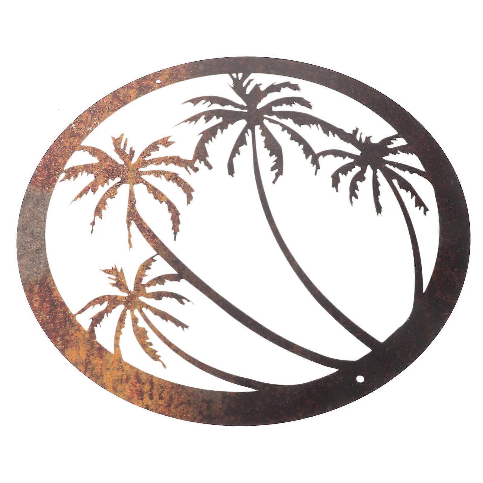 Wall Mounted Palm Tree Iron Art Decor, Rustic Metal Hanging Ornament, Tropical Wall Decoration for Indoor Outdoor Home Garden Use