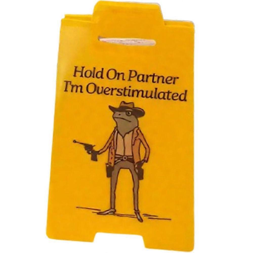 Funny Office Decor, Frog Desk Sign, Hold on Partner I'm Overstimulated