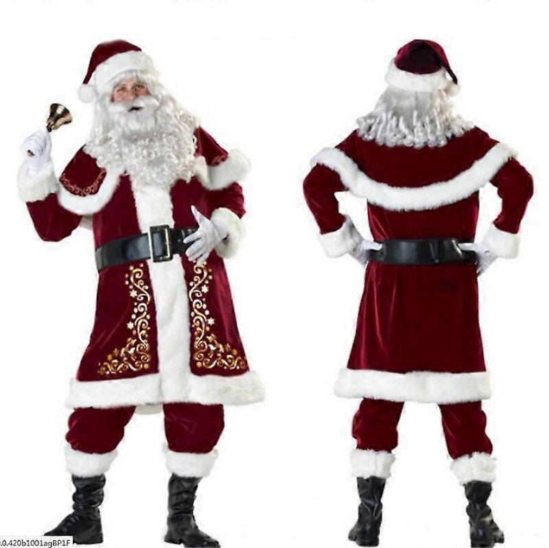 Deluxe Velvet Fancy 8pcs Set Xmas Party Man Children's Family Costume Santa Claus Suit Adult Christmas Cosplay