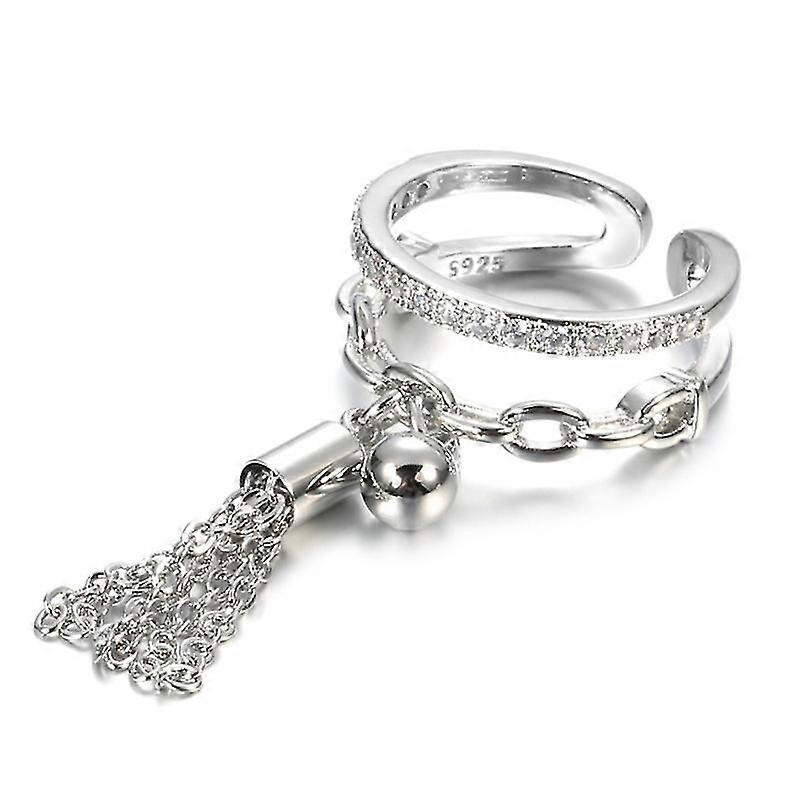 Link Chain Tassel Ring Zirconia With Spike Pendant Charm Finger Ring For Women Opening