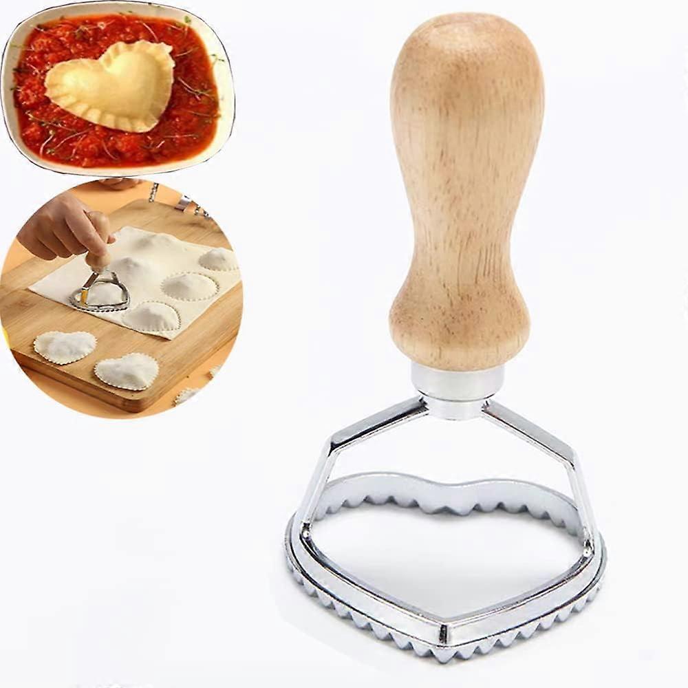 Ravioli Cutter Stamps With Heart - Shaped Mold with Wooden Handle and Fluted Edge Pasta Press Pasta