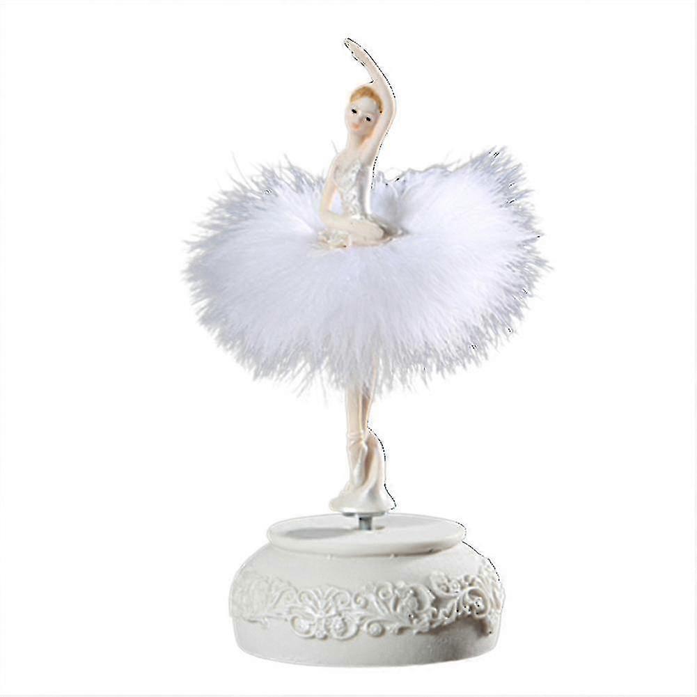 Ballerina Music Box Dancing Girl Swan Lake Carousel With Feather For B(white)/YY