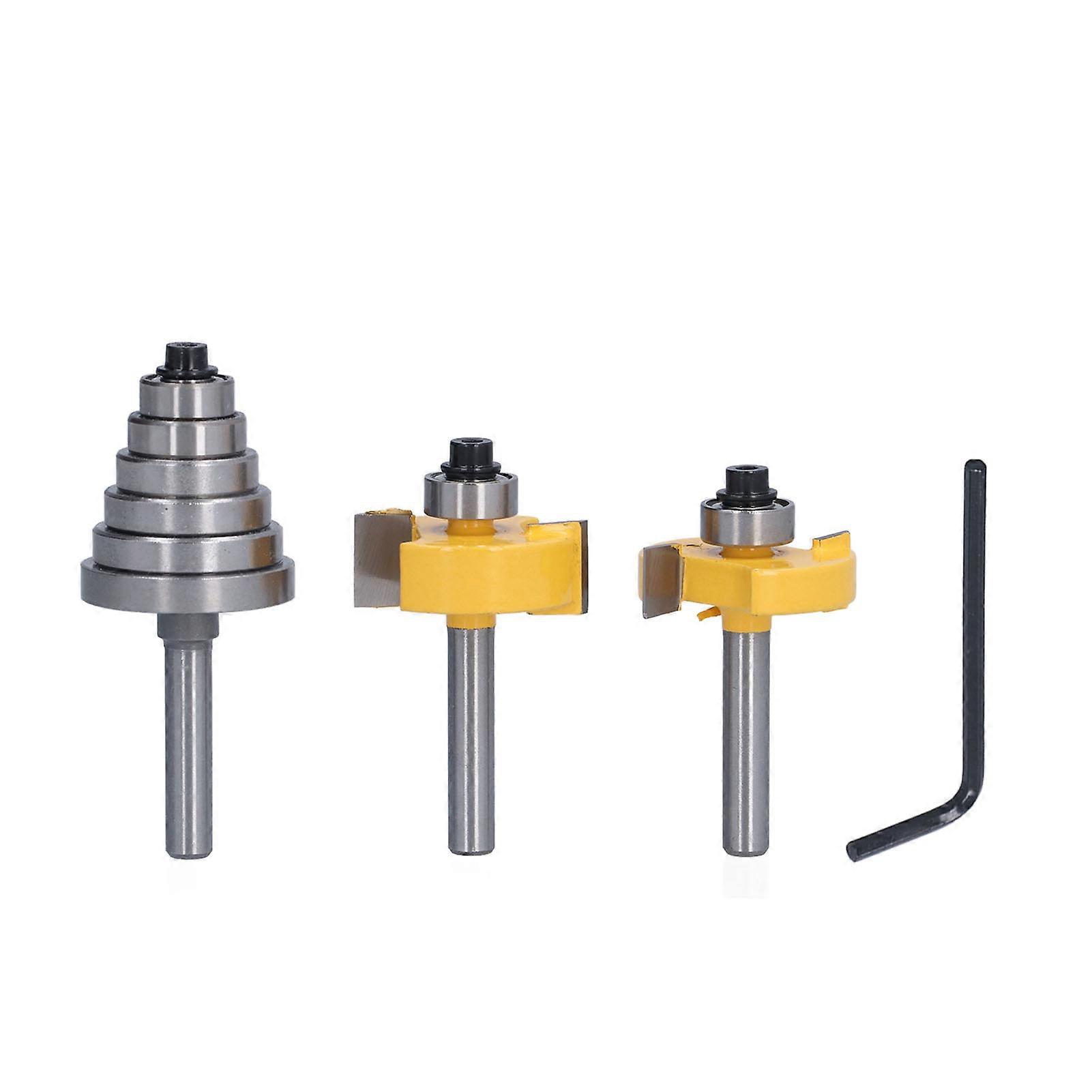 Router Bit 1/4in Shank Multi Grooved With 6pcs Bearing 1/8in 1/4in 5/16in 3/8in 7/16in 1/2in