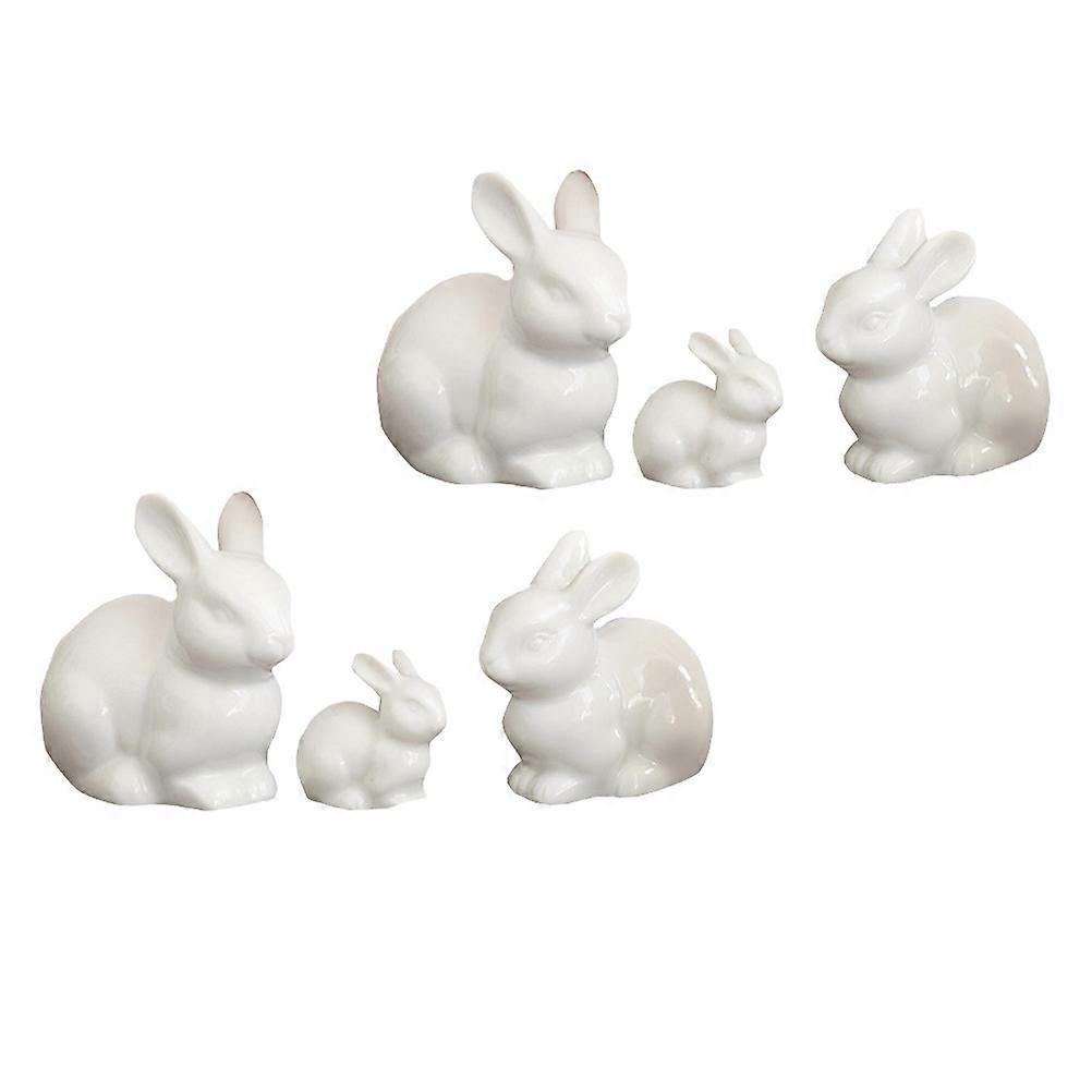 Adorable Ceramic Rabbit Miniatures for Decoration 6pcs White Handicrafts for Home Decor