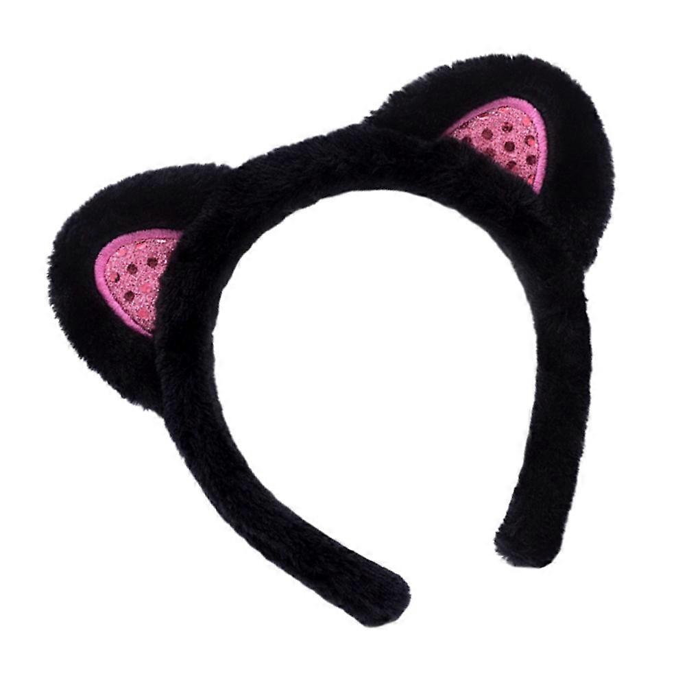 Adorable Cat Ears Hair Band with Plush and Sequin for Girls Decoration Black Tiny Size