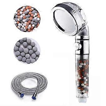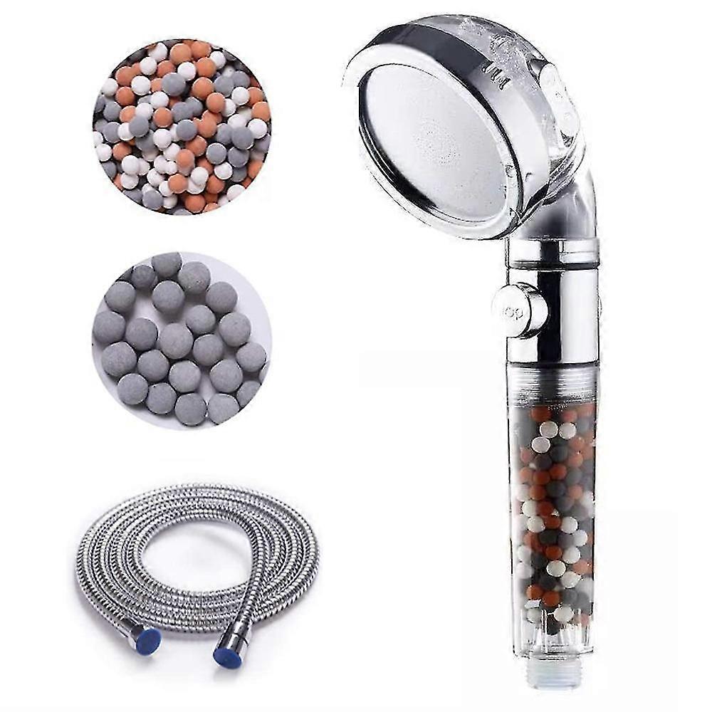 Shower Head, Anti Lime Shower Head With 1.5m Hose, Water Saving Shower Head Pressure Filtering Three Level Filter System With 3 Packs Mineral Balls Re