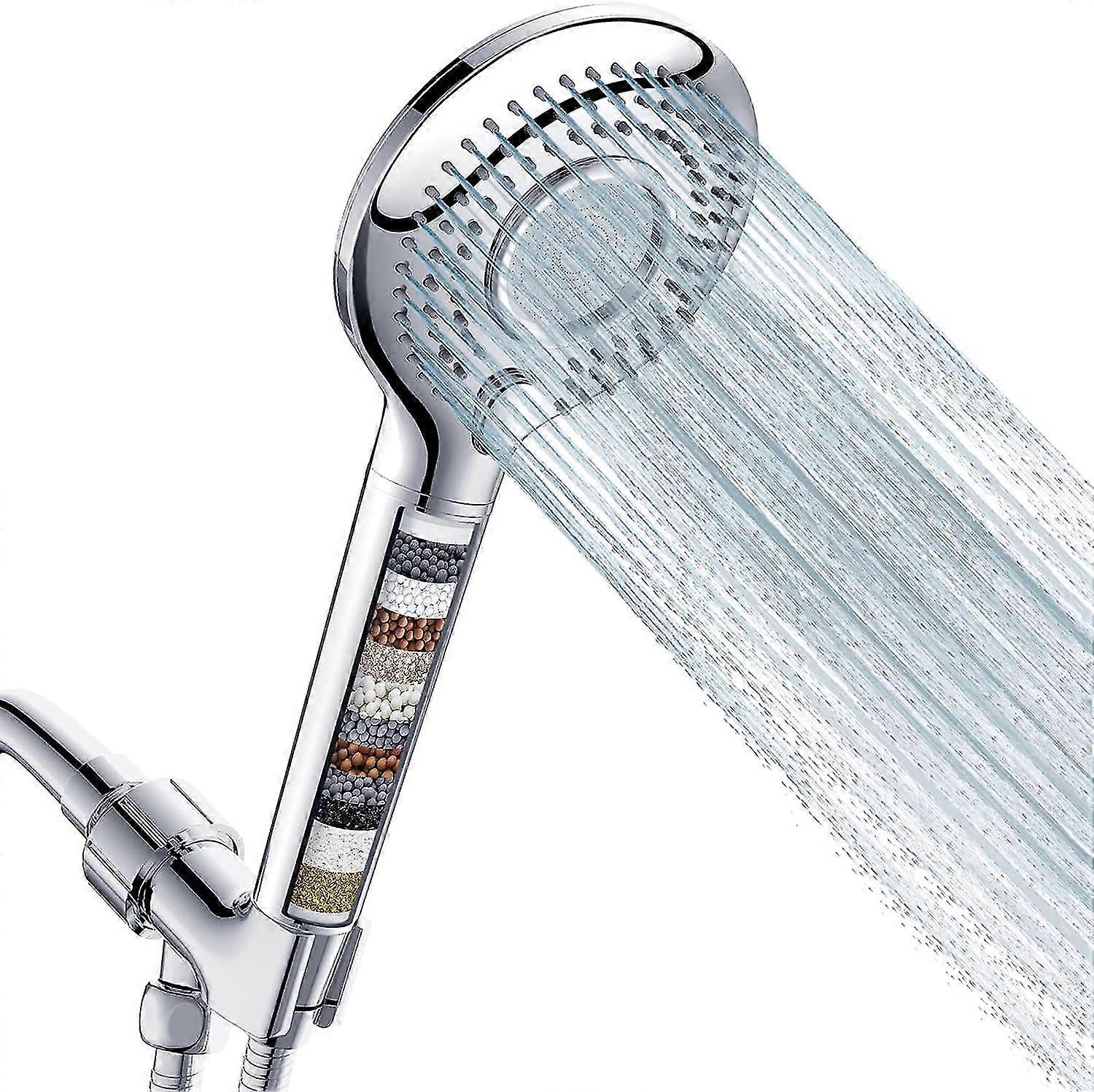 Handheld Shower Head With Filter, Feelso High Pressure 3 Spray Mode Showerhead With 60" Hose, Bracket And 15 Stage Water Softener Filters For Hard Wat