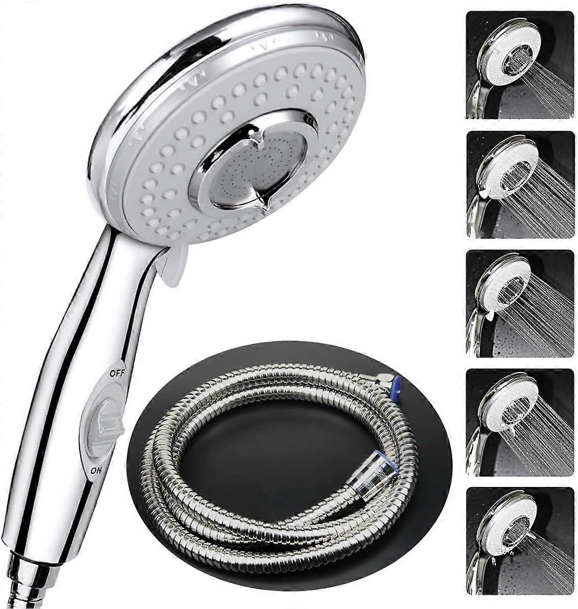 Shower Head + 2 M Flexible Shower Hose, Shower Head with Hose, 5 Water Saving Modes and Switch Button, High Pressure Shower Head Stainless Steel