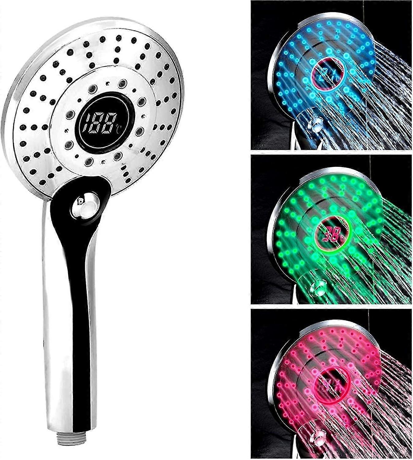 Led Shower Head, 3 Colors Led Hand Held Shower Head, Temperature Control, 3 Spray
