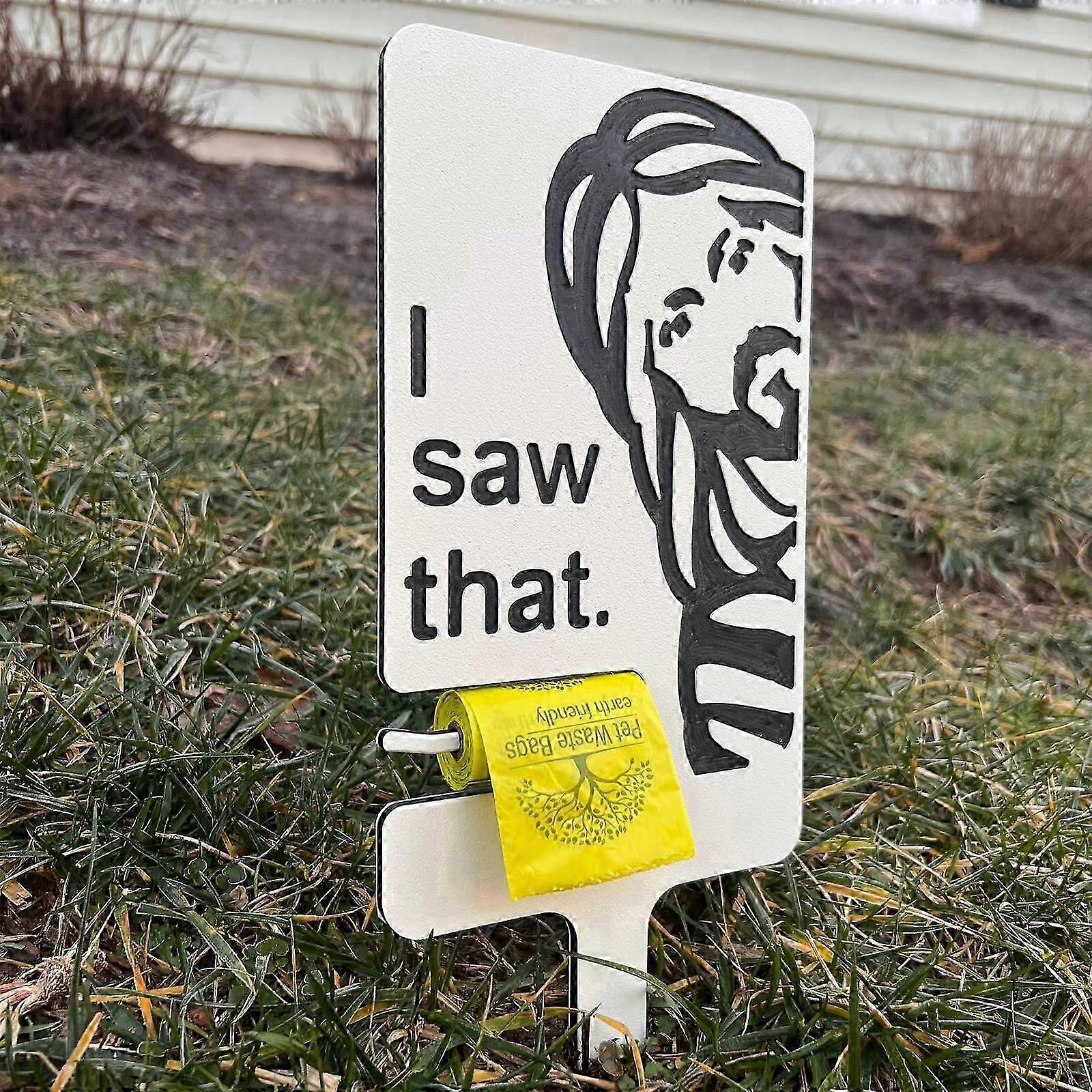 I Saw That, Dog Poop Sign with Bag Holder, Dog Lawn Sign, Please Clean Up After Your Pet -GSL