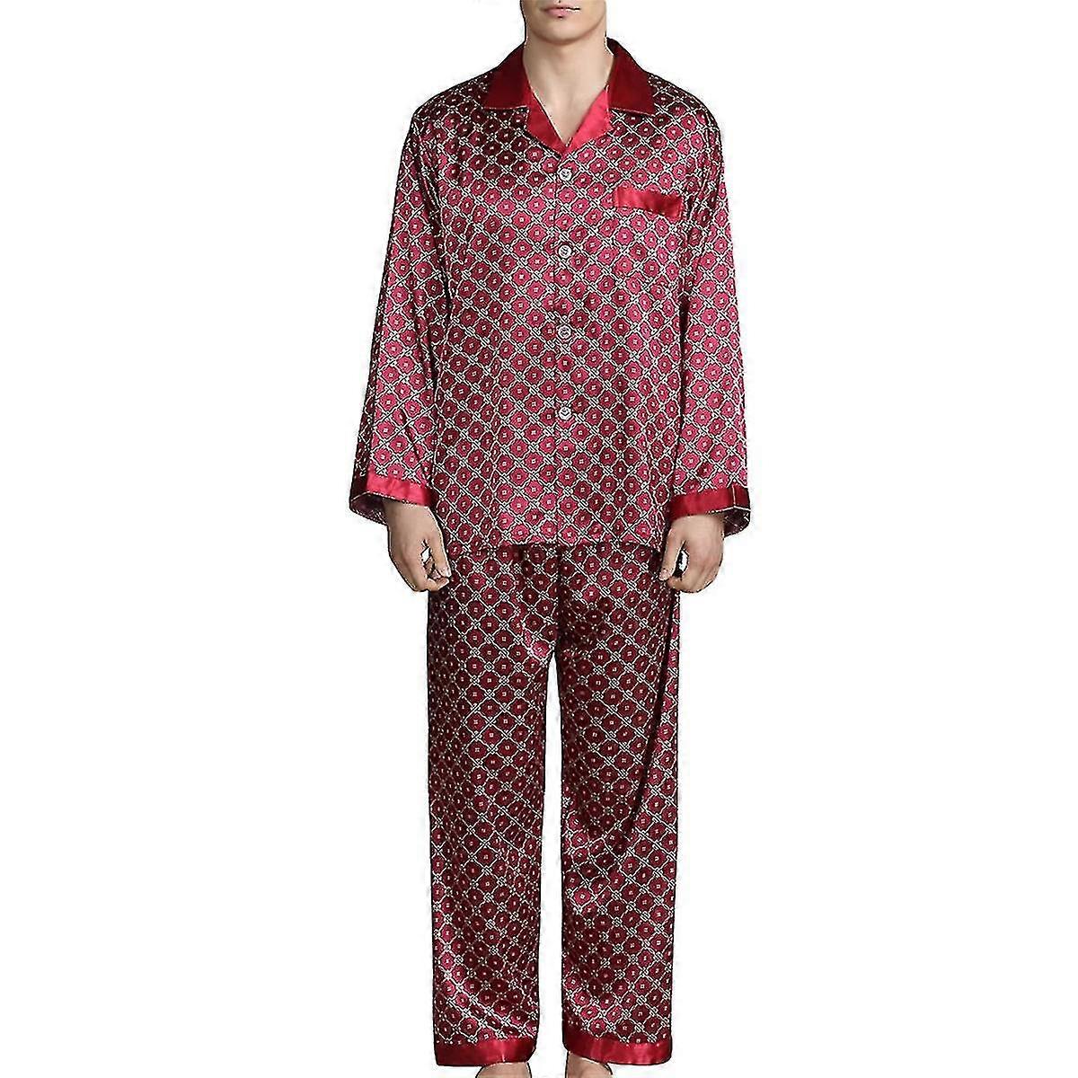 Mens Sleeve Silky Pajamas Sleepwear Set