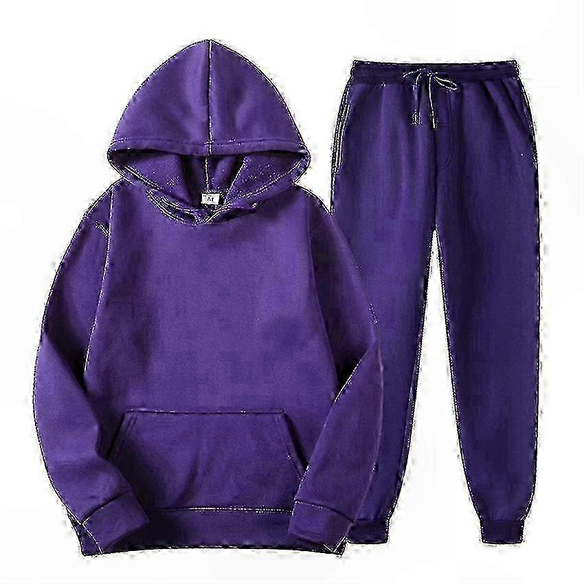 Men's Fleece Hoodie and Pant Set Solid Color Two-Piece Tracksuit for Autumn Winter Plus Size Sportswear Outfit