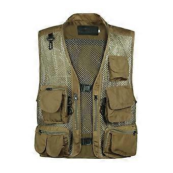 Men's Fishing Outdoor Utility Hunting Climbing Tactical Camo Mesh Removable Vest with Multiple Pocketsdark army green