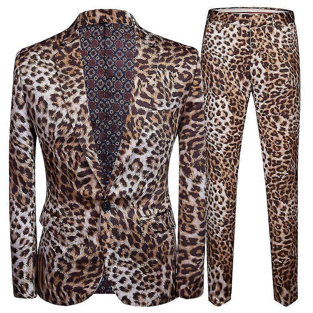 Mens 2-Piece Casual Wedding Party Slim Fit Leopard Suit (Blazer & Pants)