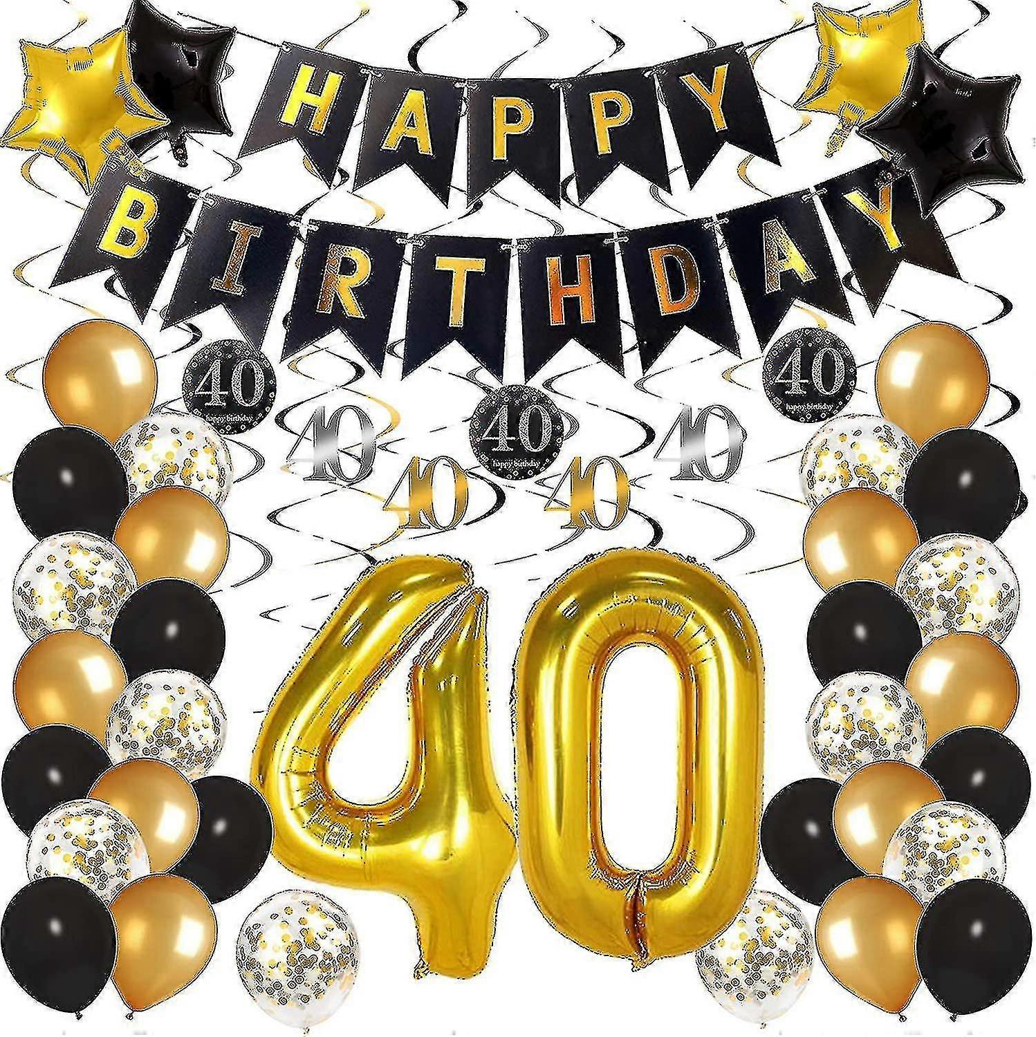 Men's 40th Birthday Decorations, Black And Gold Party Decorations Kit - Happy Birthday Banner Balloon Confetti Balloon Swirl