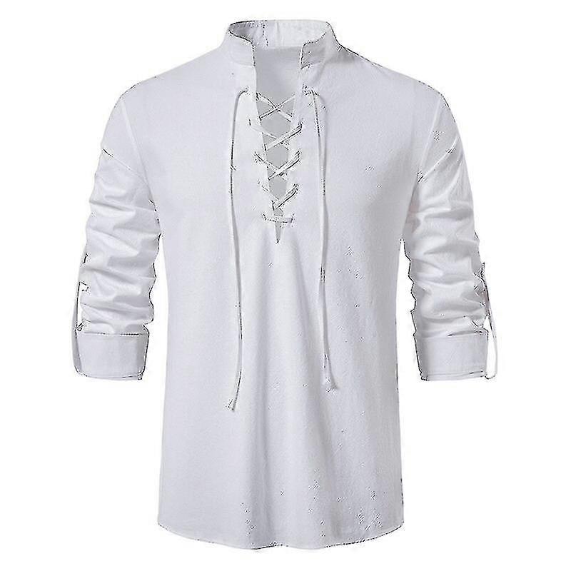 Mens Scottish Jacobite Ghillie Kilt Shirts Medieval Renaissance Pirate Costume Long Sleeve Lace Up Henley Shirt Men Camisas Xxl-xinhan