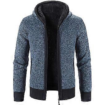 Mens Winter Hooded Thick Cardigan Fleece Lined Knit Sweater