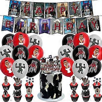 Toilet man theme birthday party decoration Skibidi toilet horror birthday pull flag cake card balloon