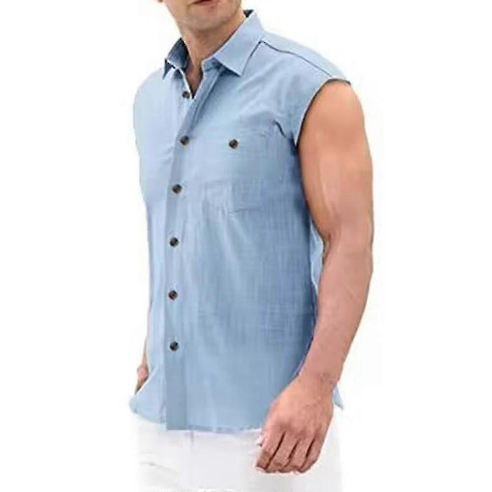 Mens Sleeveless Summer Cami T-shirt Buttons Holiday Vest Slim Fit Solid Tank Tops
