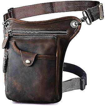 رجل جلد طبيعي دراجة نارية الخصر حزمة رسول الكتف قطرة حقيبة الساق (211-5 A-الظلام