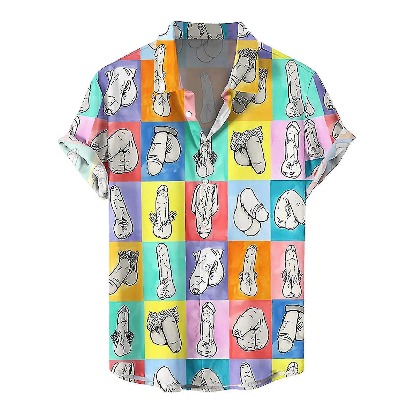 Mens Button Down Shirts Funny Printed Hawaiian Beach Tops Novelty Ugly Gag Gift