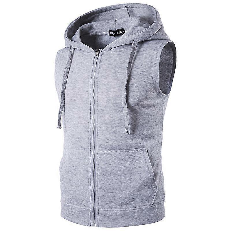 Mens Casual Slim Fit Zip-up Sleeveless Hoodie
