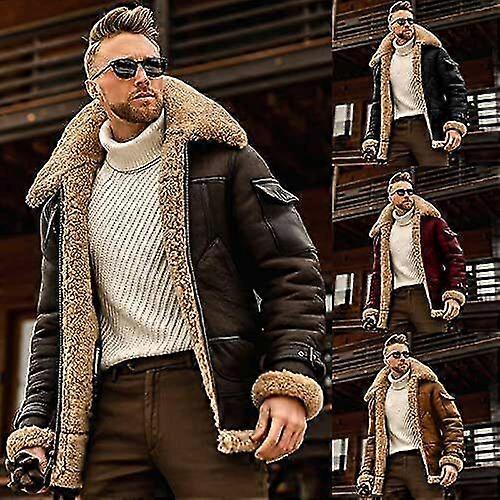Mens Faux Lamb Shearling Sheep Skin Bomber Flying Jacket Winter Aviator Coa