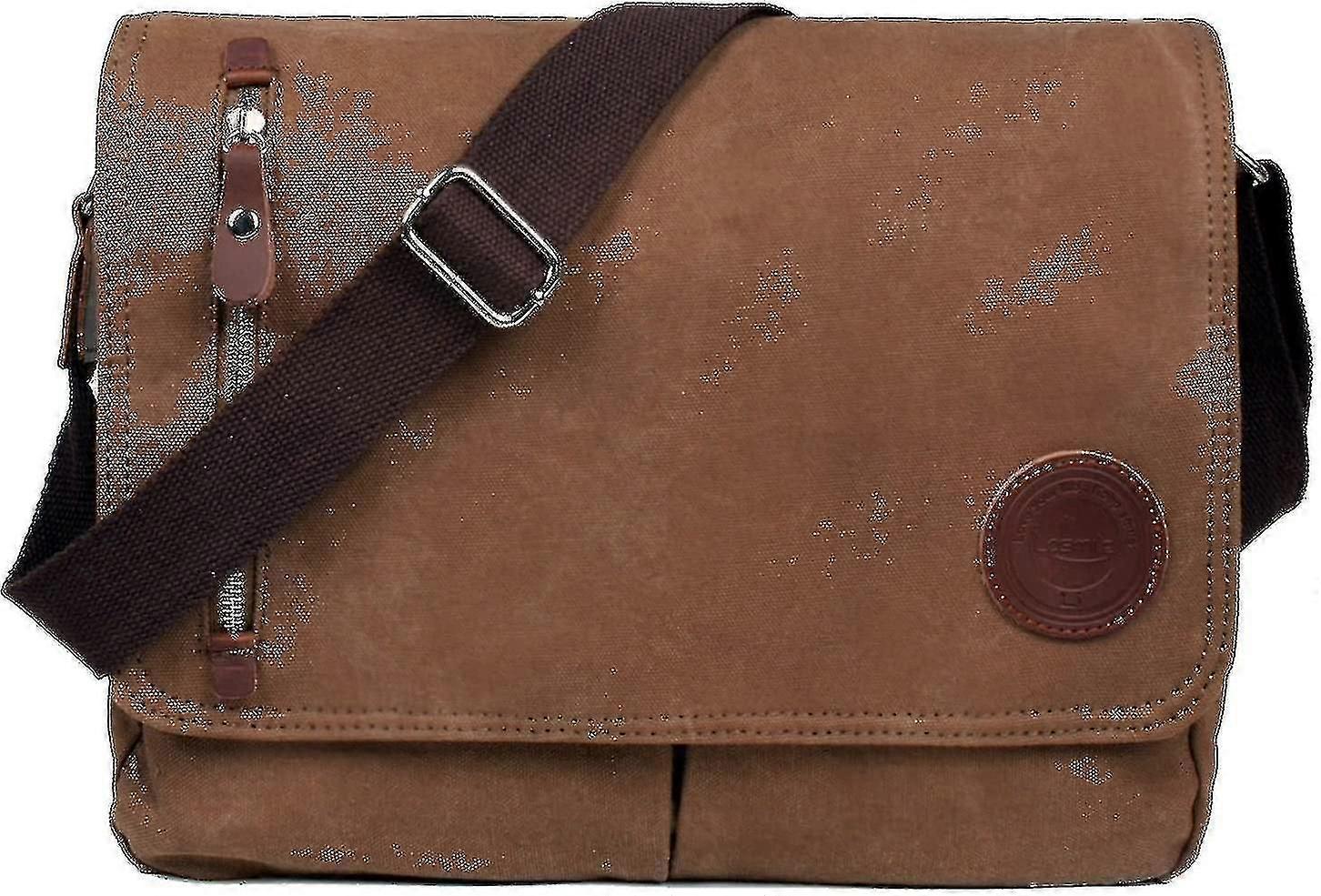 Mens Canvas Messenger Shoulder Bag For School Work Travel(brown)