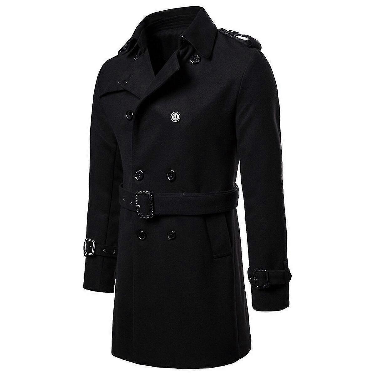 Mens Wool Coat Mid-long Belted Lapel Solid Overcoat