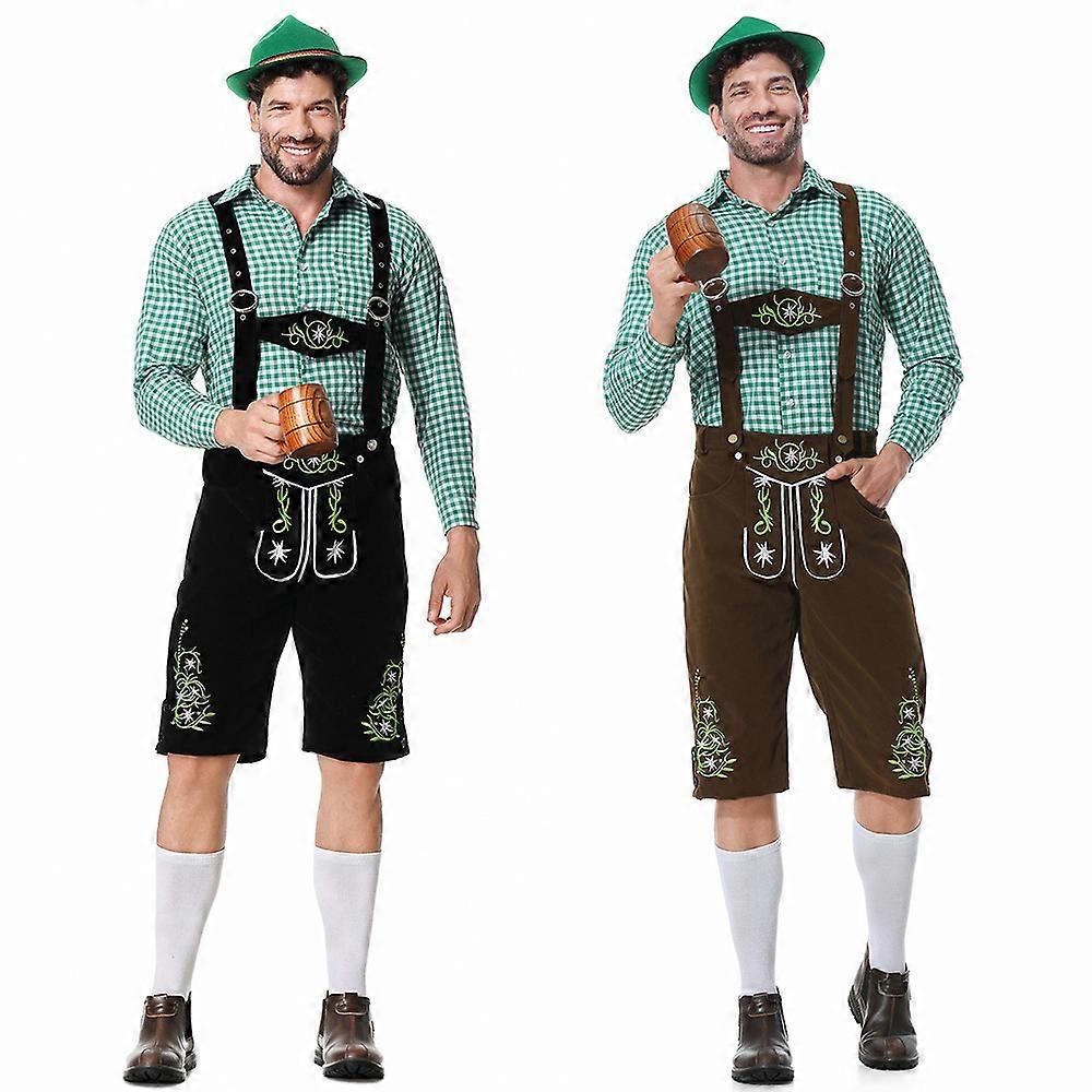 Mens Oktoberfest Bavarian Beer Costume German Bavarian Shorts Outfit Overalls Shirt Hat Suspenders Short Set Halloween Costume