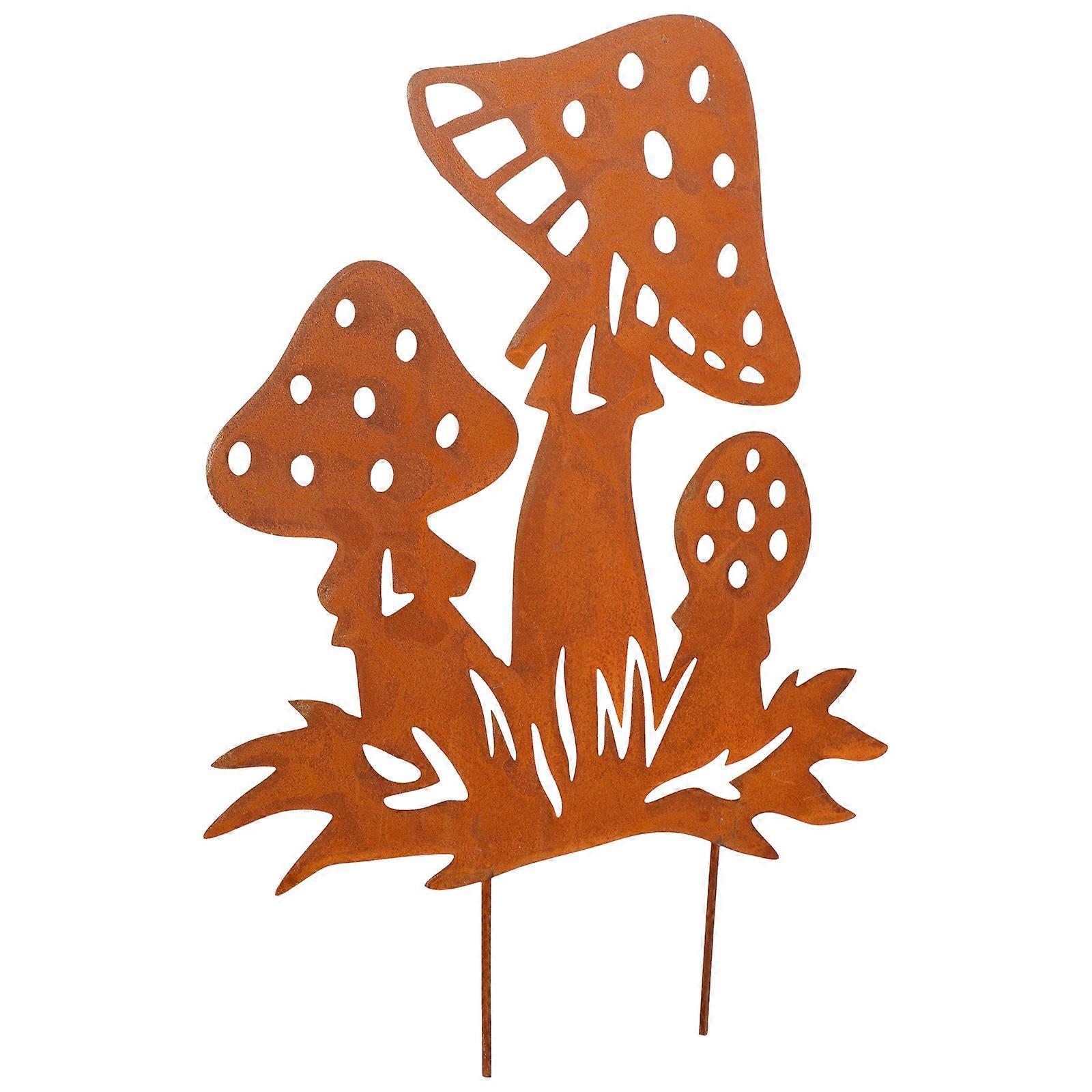 Painted Metal Mushroom Garden Stake Decorative Plant Marker with Hollow Out Design for Outdoor Lawn and Rustic Landscape Decoration
