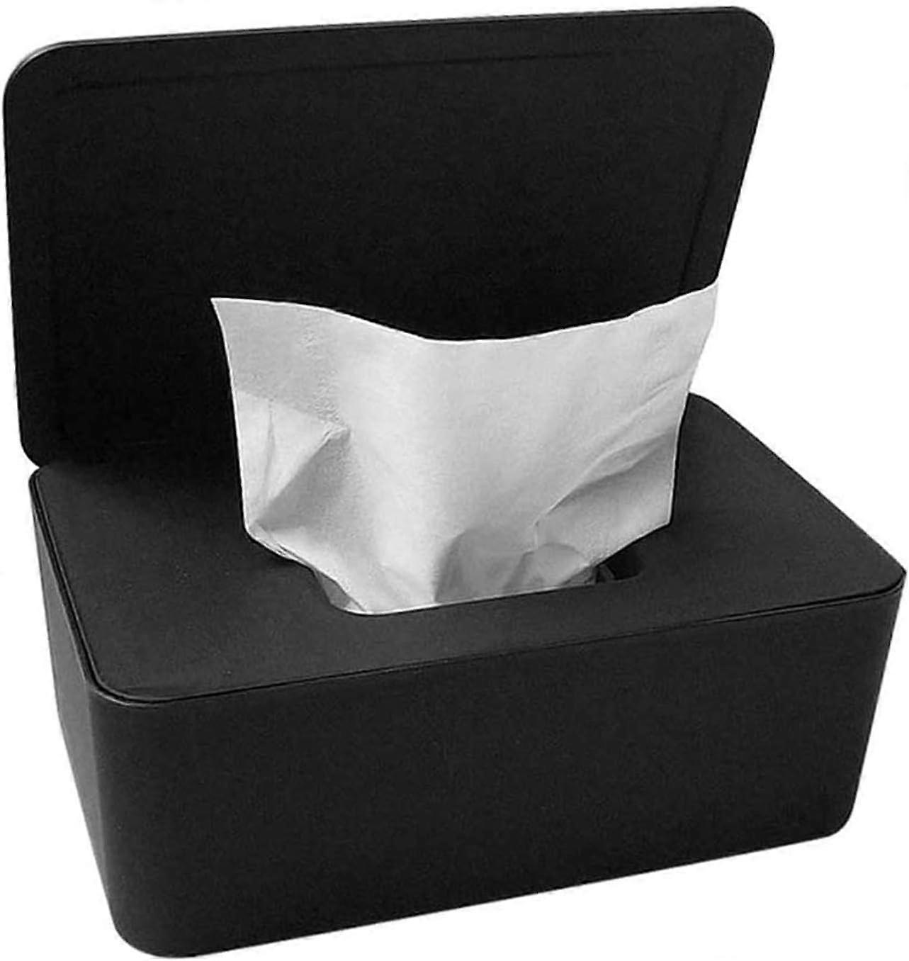 Damp, Wet Wipes Dispenser Tissue Box with Lid Tissue Box Holder Towel Extraction Baby Dustproof Storage Box Tissue Storage Black