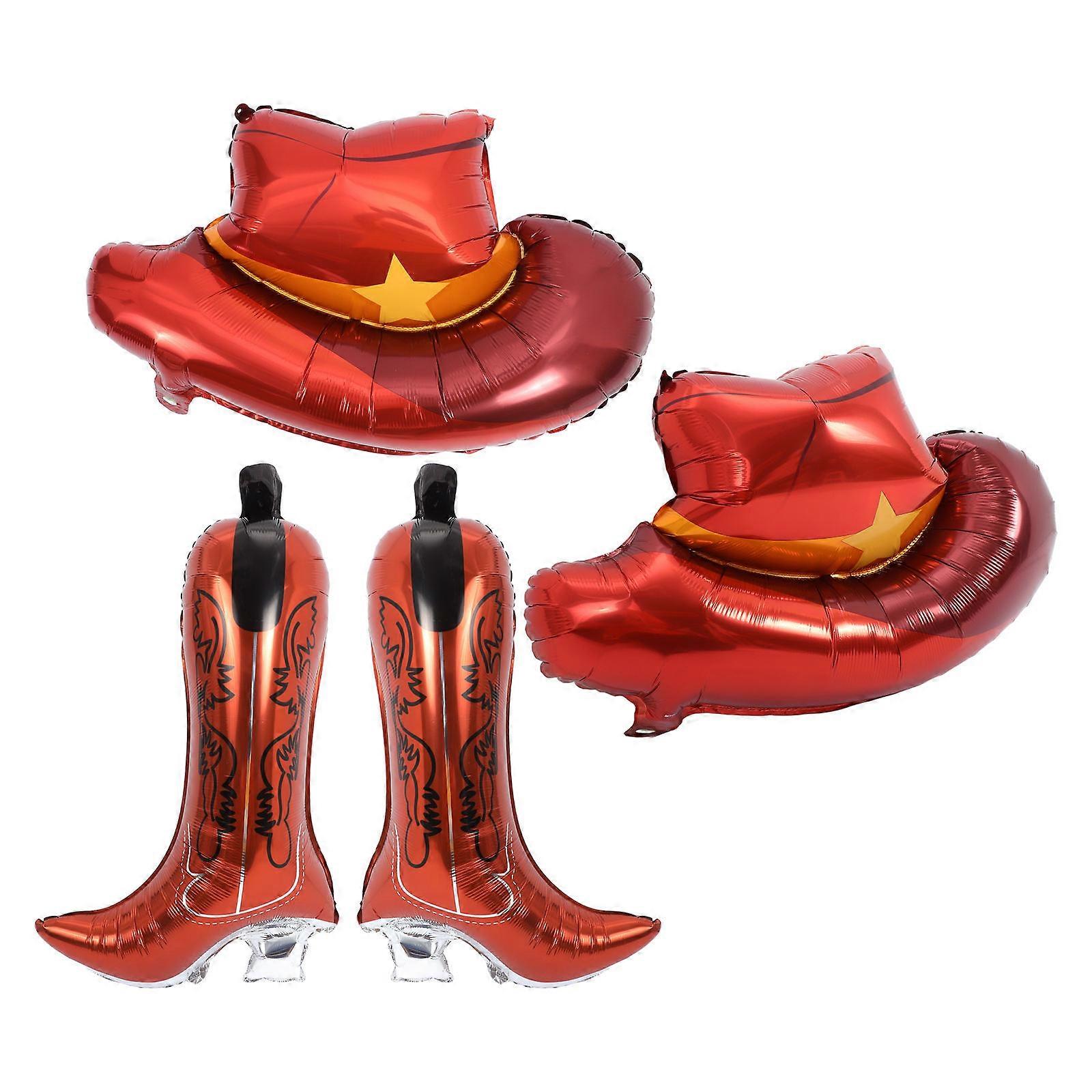 Cowboy Boot Design Wild West Decorations 4Pcs Brown Aluminum Foil Balloons