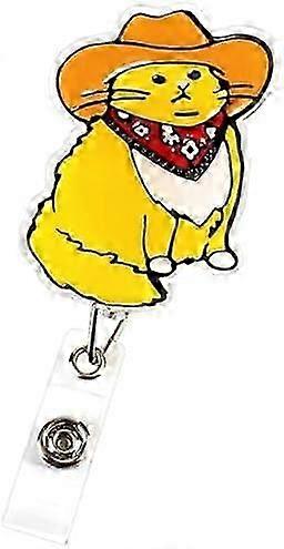 Cowboy Cat Badge Reel Retractable Clip, Funny ID Holder for Nurses & Medical Staff