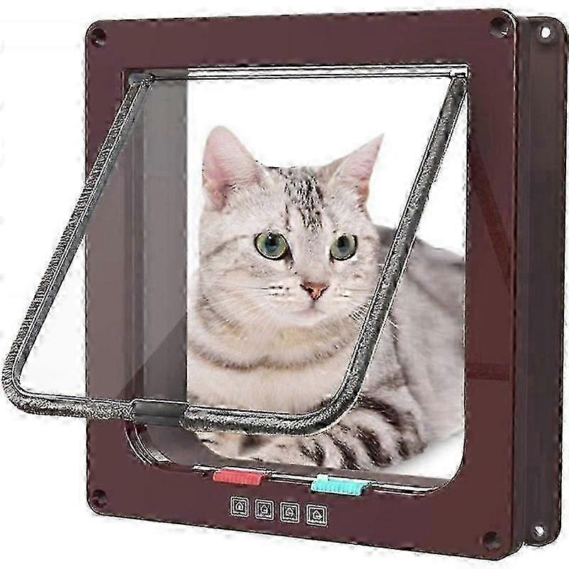 Cat Flap Magnetic Cat Flap with 4 Way Rotary Lock for Cats L: 25 x 235 x 53 cm Brown