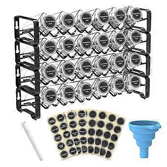Spice Racks with 24 Empty Square Spice Jars for Countertop, Cabinet or Wall Mount With Spice Labels Chalk Marker and Funnel Set