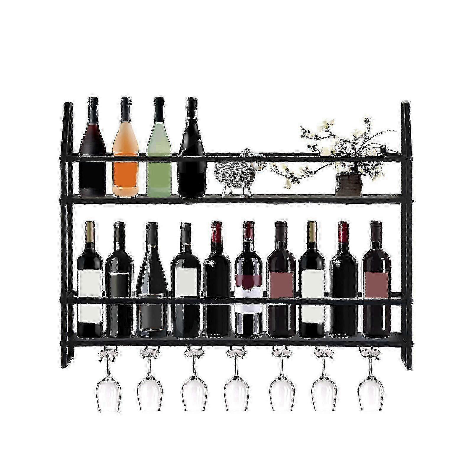 Wine Display Racks Wall Mounted Wine Glass Storage Holders Steel Wine Bottle Holder Black 80*12*62cm