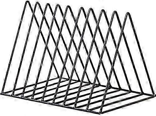 Sturdy File HolderColour:Black,Perfect size:11.3" x 7.4" x 7.1",Distance between each slot:1.18 inches,Great organization toolSimple and Beautiful Magazine FileIron art stripe geometric manufacturing and high-quality paint process, subverting the knowledge of the bookshelf, looks very texture and fashionable.Durable Magazine HolderMade of high quality iron wire ,unpliant and easy to clean. Triangle shape maintains great stability,Outer layer epoxy coating, rust-resistant and highly durable, ensures long working life.10 Slot Newspaper HolderThe 10 sections in this wire step file organizer provide enough space for storage. And it will help you to categorize your magazines,books,files,folders,newspapers,mails,books,notebook pad and other items, reducing your desk clutter down to almost zero, keeping your desk neat and tidy. The best choice for your office, school and home use.Multi-functional Magazine StorageUnlike traditional bookshelves,our Nordic-style magazine rack is both a book rack and a fashionable setting, very literary, can be used for decoration,photographing and special art.Suitable for home, office, waiting rooms, break rooms school and so on,you could put it anywhere you want.
