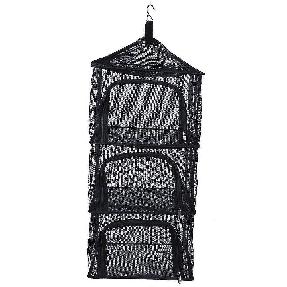 Foldable 4 Layers Hanging Shelves Dry Rack Net Zipper Opening Mesh Netting Outdoor