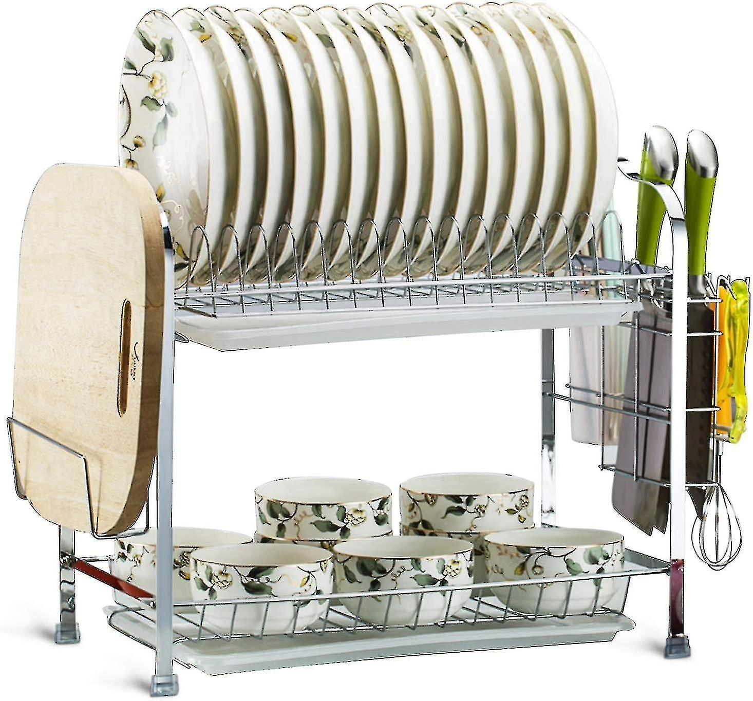 Dish Rack, 2-Tier Dish Rack with Utensil Holder, Stand and Cutting Board Holder, Dr