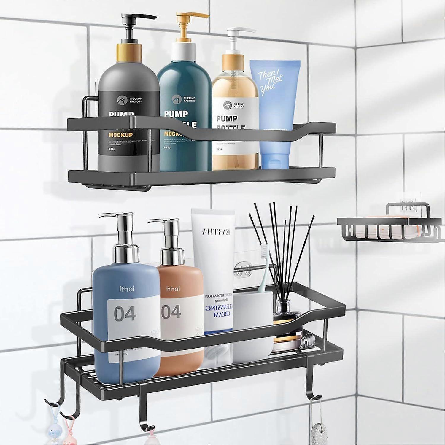 Bathroom Shelf - No Drilling - Set of 3 Wall Mounted Bathroom Shelves - Black