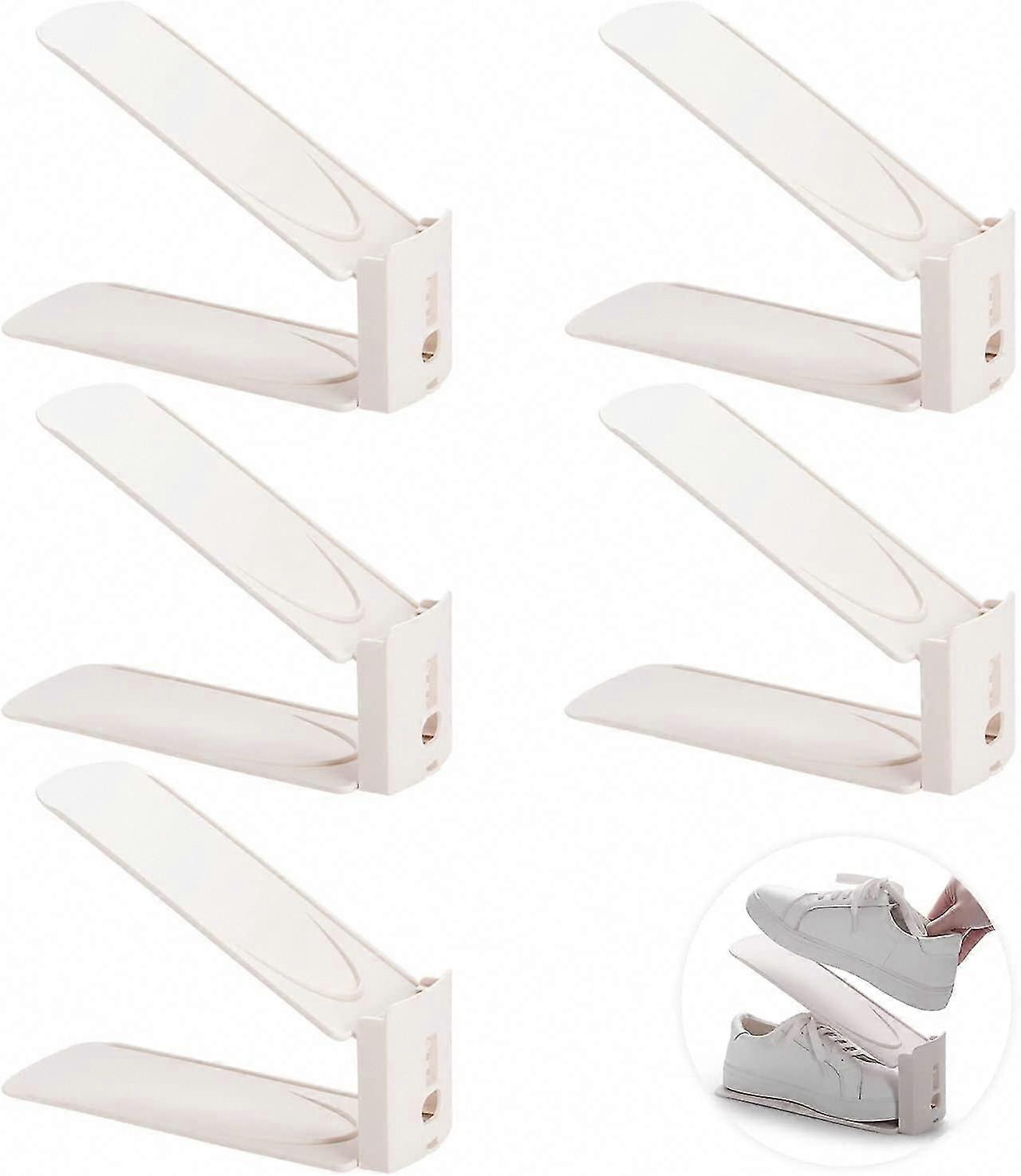 Double-deck shoe organizer for closet design aid immediately saves your storage capacity and helps you find the right shoes quickly, and maximize closet organizers and storage. Adjustable Shoe Slots The height of the closet shoe organizer can be adjusted from inches to depending on the shoe type. It is suitable for most children's shoes, slippers, flats, sports shoes, sandals, high heels, etc. With a slim waist design, you don't have to worry about the shoes being tight. With an arch raising design and a baffle, which can prevent the shoes from slipping when adjusted to a higher level . Also, the shoe slot holder has flaps on the back, keeping your space tidy and neat. The shoe storage organizer is made of high quality and eco-friendly non-toxic material, which provides higher load capacity and longer service life. Take off the shoes and wash the stacker with detergent. soap and warm, clear water. Keep your closet shoe rack tidy over time. No more need for men to store tennis shoes inside cardboard boxes!Note: The data is all manual measurement, please allow 1 - 3cm error, due to the difference in light and display, there will be a certain color difference, depending on the physical object received.